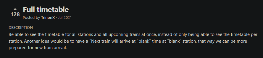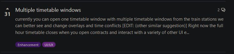 We maybe introduce more of these panels after 1.0, but for now, we plan just the station timeline and the train list to replace the current UI functionality.