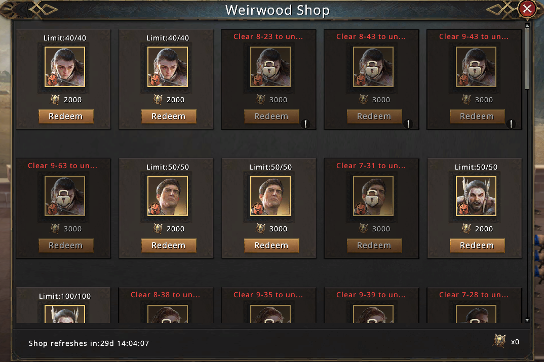 The Weirwood Shop is newly added where players can use the new Weirwood Token to redeem Commander Medals that are randomly dropped from stages in the old version. The difference is that you have to make wise choices since there are limits on the commander medals that you can redeem daily.
