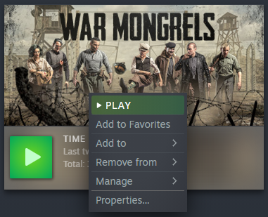 Click with the right mouse button on War Mongrels and select ‘properties’;
