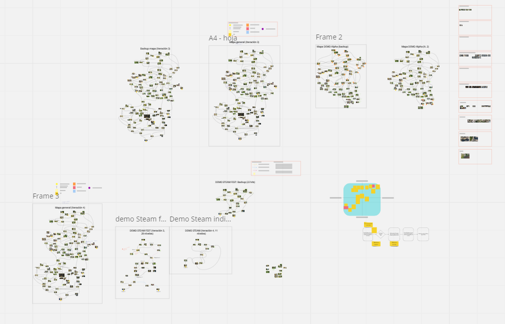 The picture above includes all the iterations and the different maps we made for Indicade, the Steam Fest, the Demo, and the full version. So, yes, the released game will be a whole new experience!