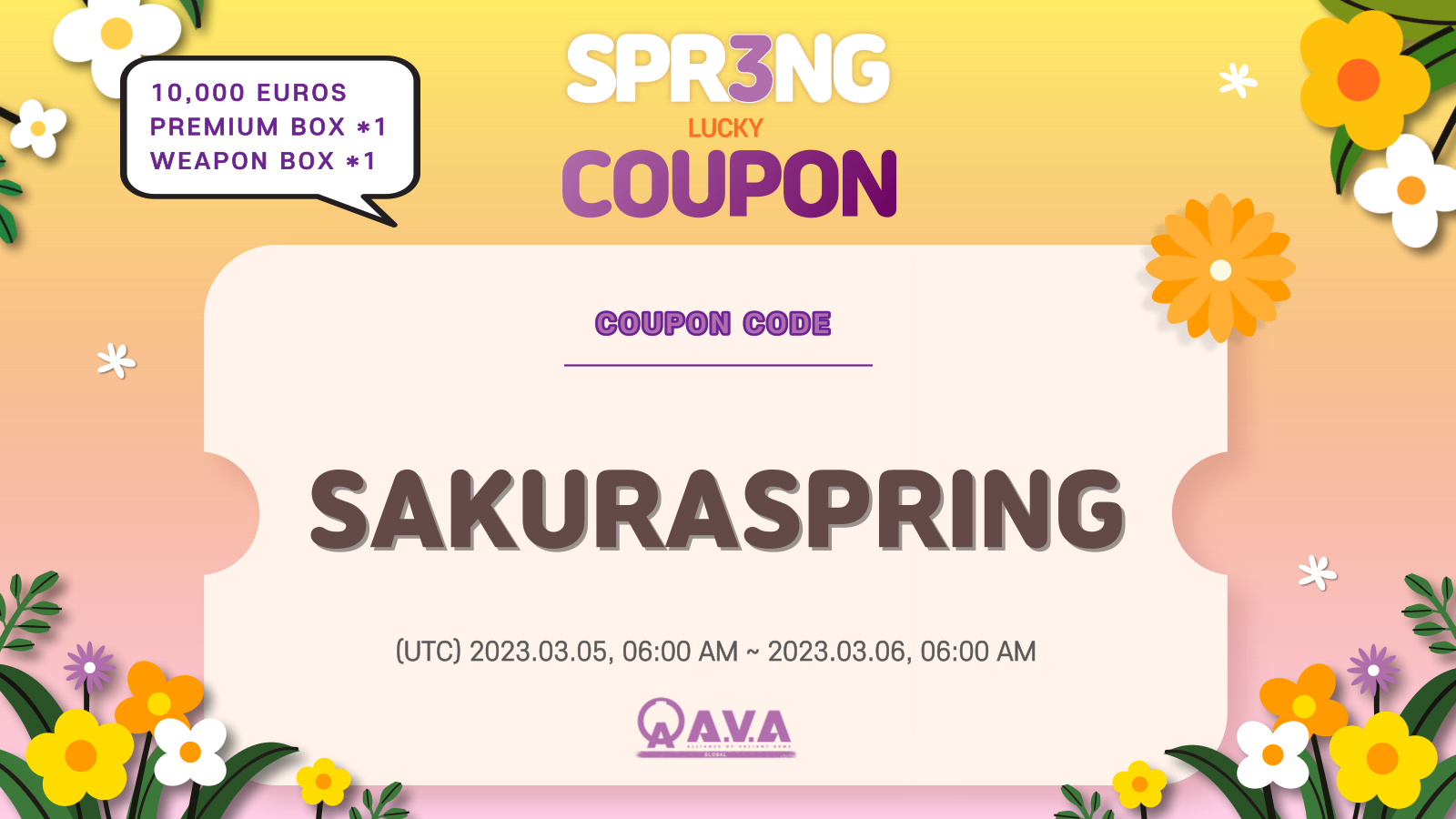 With this coupon, you can get 10,000 Euros, Premium Box *1, and Weapon Box *1 as a reward. Enjoy a lively weekend with the special gift we prepared for you.
