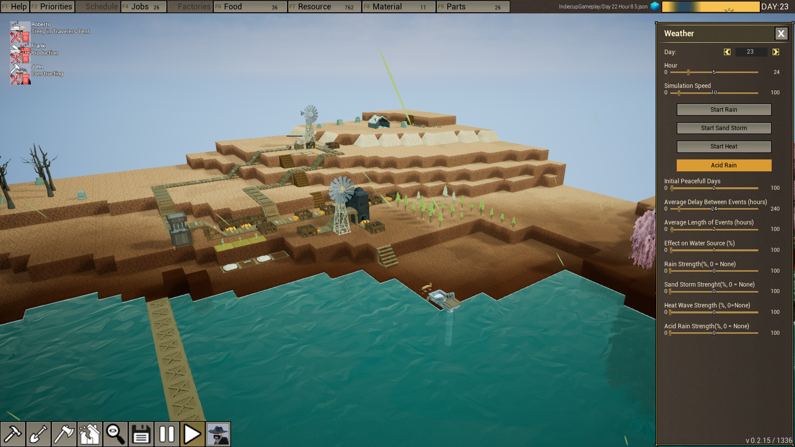 At pictures you can see acid rain that players could set in Editor mode for each map they create. And a map with poisoned toxic river that will after some time destroy the vegetation.