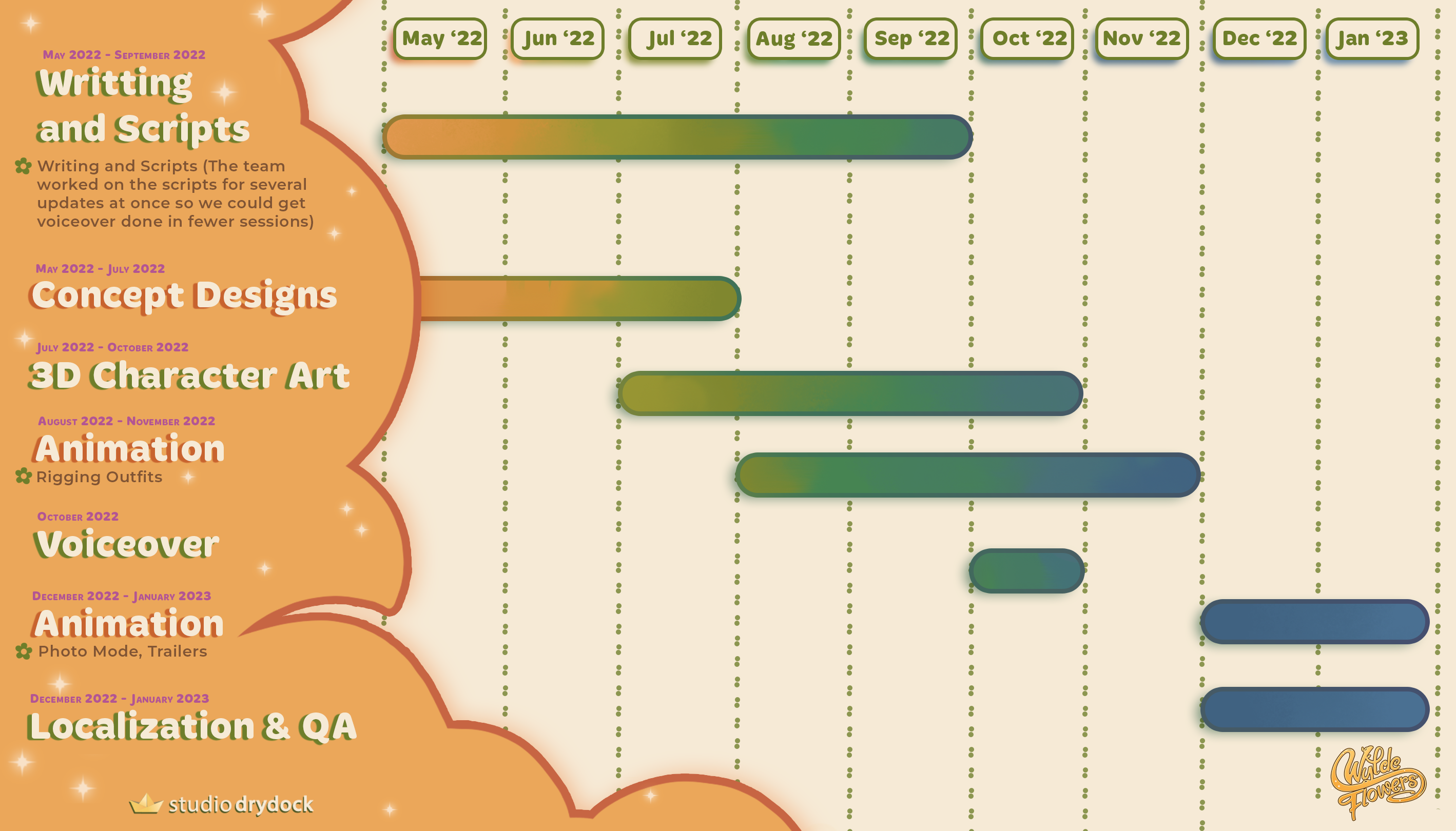 Audrey: What was your biggest challenge? Alexandra: Since Violet’s Boutique is an update that can kick in during year one, we’ll have players encountering this new content from all different parts of the game. Some might be experiencing Wylde Flowers for the very first time – welcome! – while others have finished the main story and are now enjoying endless mode – nice to see you again . So when it comes to testing the update, it’s not just a matter of looking at extra quests added onto the end, but revisiting the entire game across the board to determine how this might impact previous parts gameplay and making sure that everything is going to still be working as intended