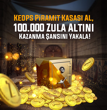 Kheops Kasası'nda 100.000 Zula Altını Kazanma Şansı! Hafta etkinliği boyunca Kheops Kasası'ndaki bu şansı kaçırma.