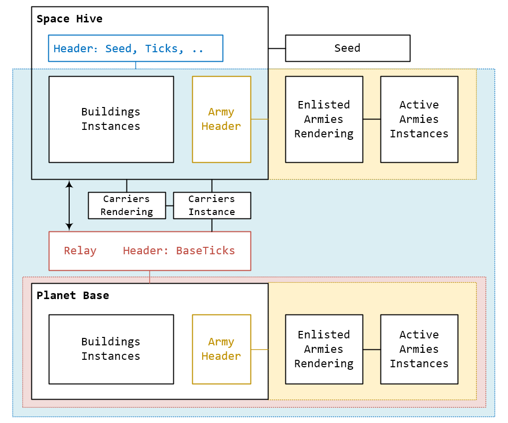 And In order to ensure stability, we redesigned the nest growth process so that it could bake out a certain nest growth map based on fixed age and random number seeds in real-time without interference. This way, even when each nest contains up to 2000 buildings and units, we can at least transform distant nests that had not been encountered into several header data such as “age”, “random seed ”, etc. and generate relay stations and seeds simultaneously to ensure that unencountered Dark Fog can still expand outward.