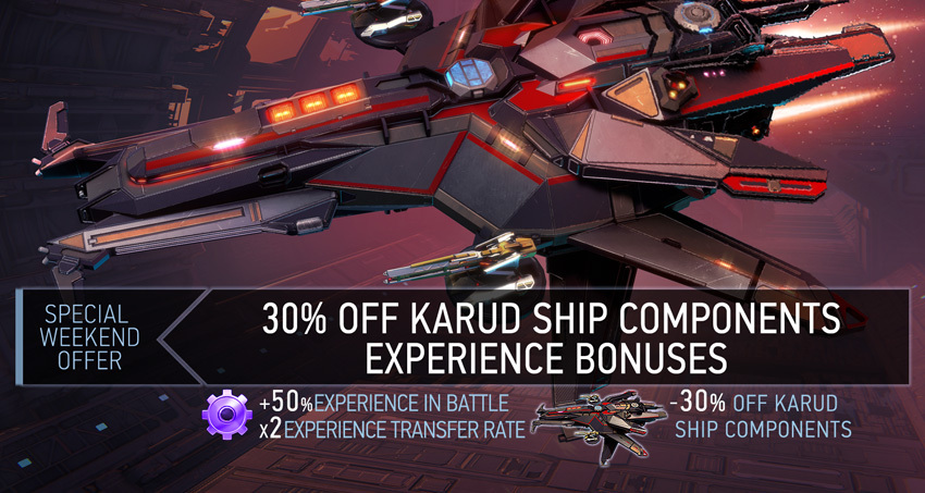 Pilots, the weekend begins! Time to prepare your fleet for new victories! UMC offers all pilots a 30% discount on parts for the ship Karud! The parts can be purchased directly from the ship tree.
