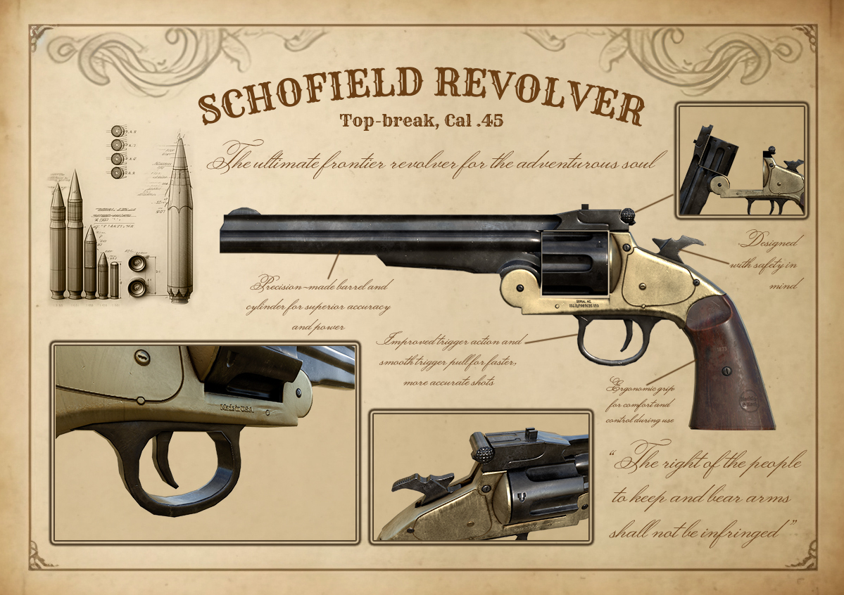 We are thinking to give players access to a variety of revolvers, each with its own unique stats and attributes but for now we got only one model available. Ultimately its not a shooter game ;) Speaking of - revolvers are small and easy to use so a lot of NPCs will carry them! So don't think of robbing everyone in your sight ;)