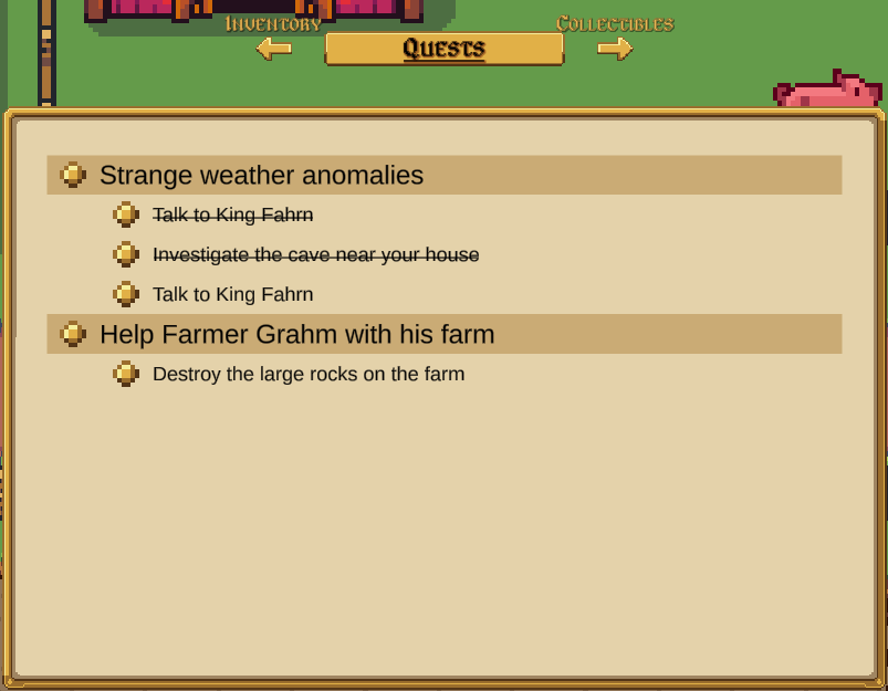 A bunch of quests has been implemented and the system on how they work is complete. The GUI might need a bit of a redesign though, but for now it's functional.