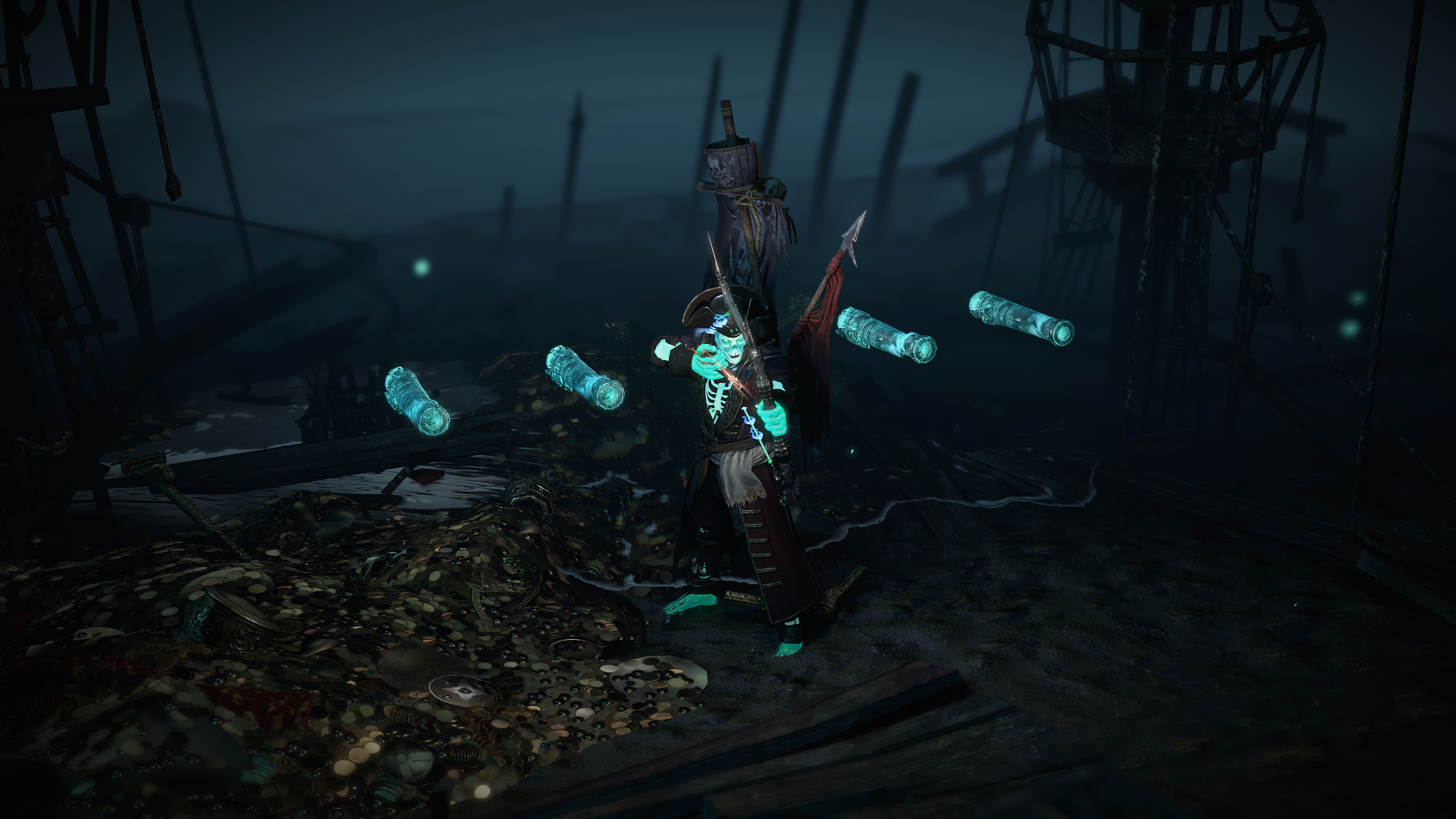 Protect your boat and booty using the Cannonade Volley Effect! Match it with the Corsair Armour Pack, Back Attachment, and Spectral Deathnotch Bow to really make your foes shiver their timbers!