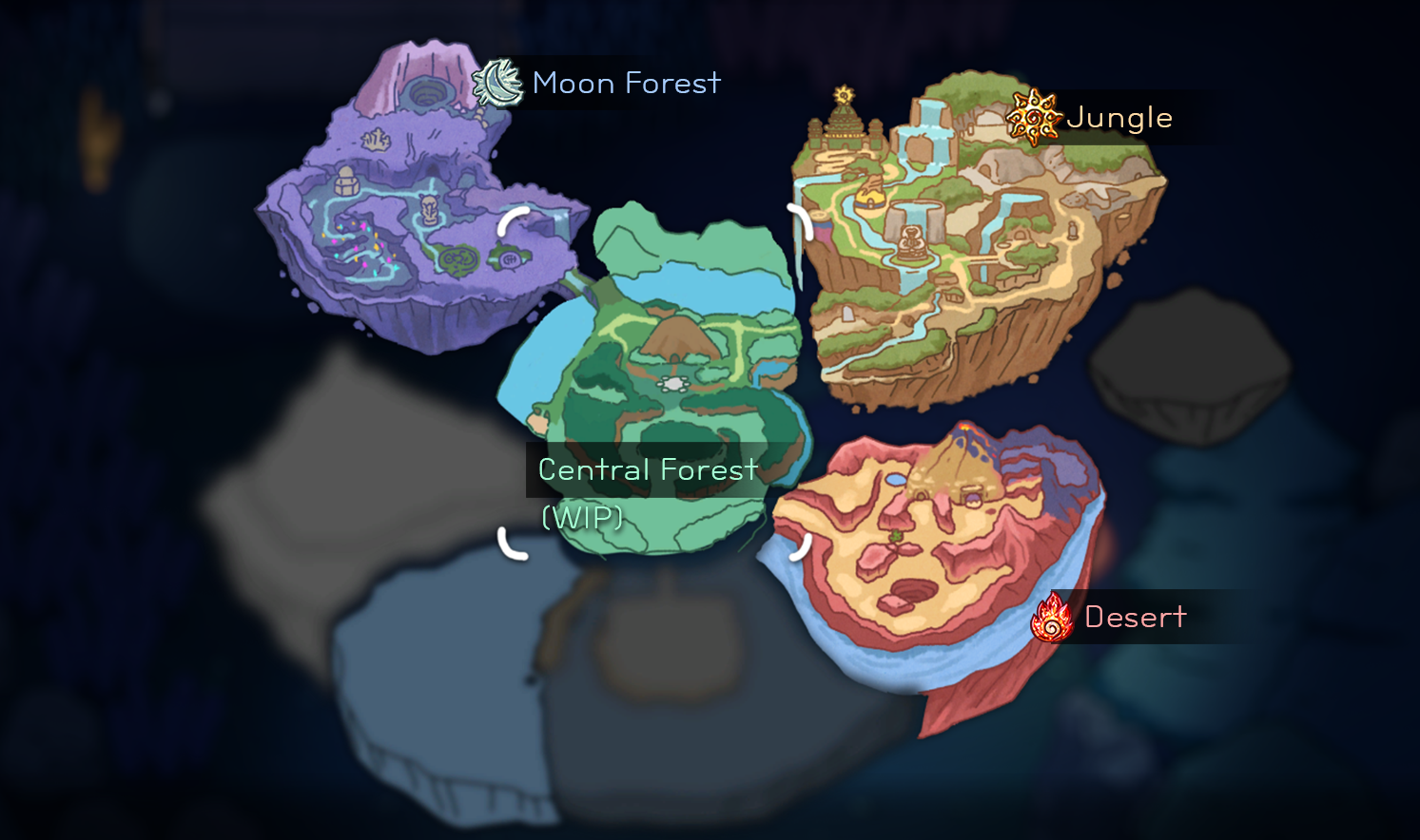 In this early access version, we include 3 main regions out of 6 regions(Jungle, Moon Forest, Desert) and a few other areas to explore.
