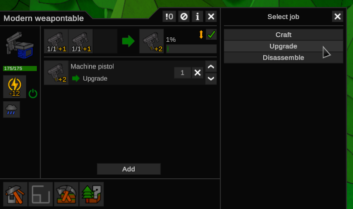 it's time for a new update (v0.1.025) and this one is about the new weapon upgrade system, a new technology + working tables, the production limit manager and some other fixes.