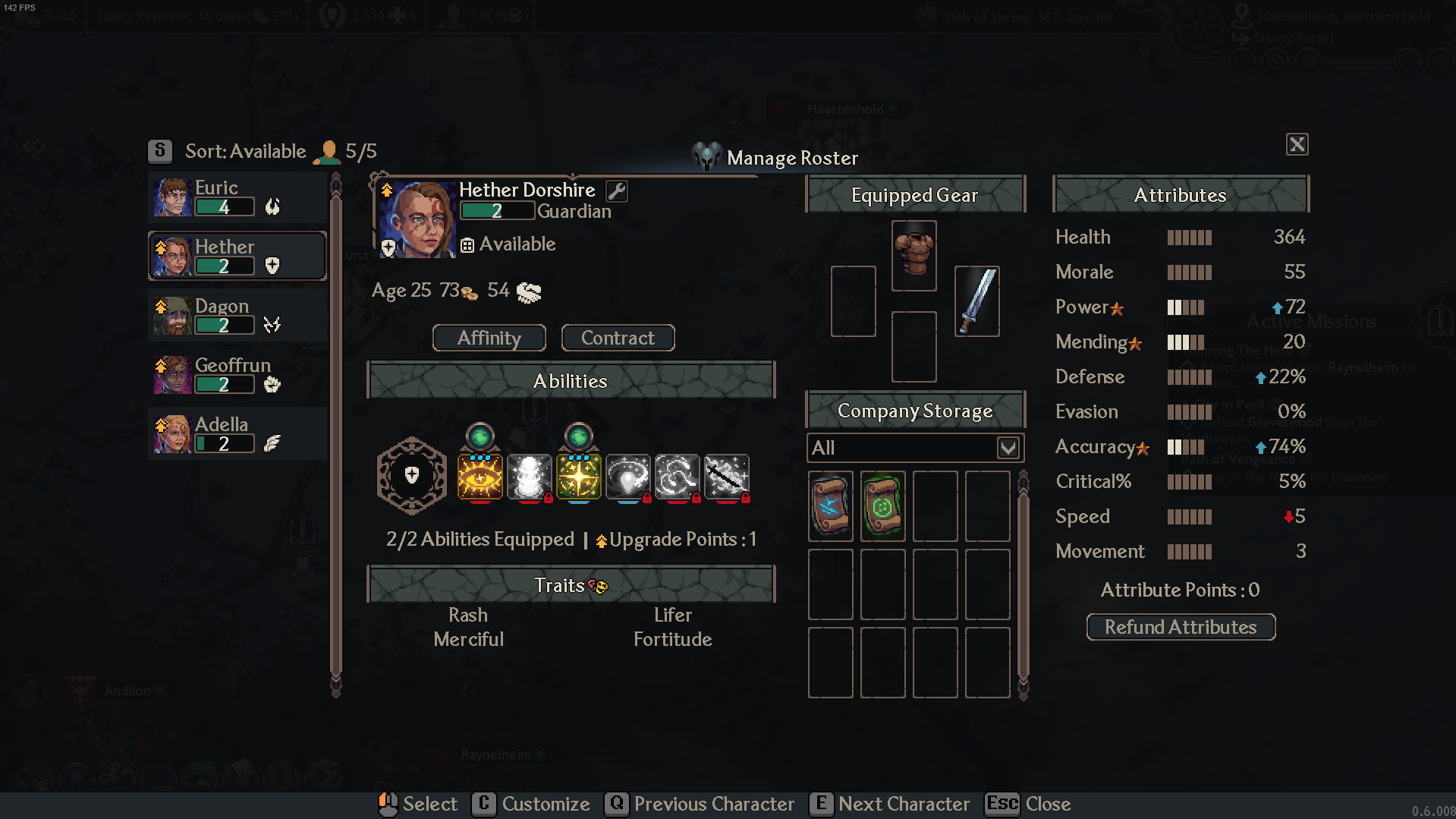 New UI Screens: The Manage Roster and Storage screens have been completely redesigned. Other screens now have their own dedicated windows (they will also be receiving a redesign in the future to match the style of the new roster screen).