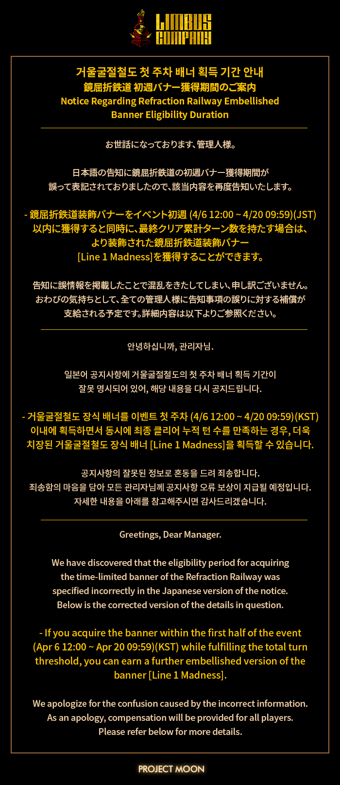 We will be performing maintenance at 23:00 PM on 04/12. We expect this maintenance to last about 2~3hours. If finished faster please check notice to re-log. You can find detailed information in the followings below.