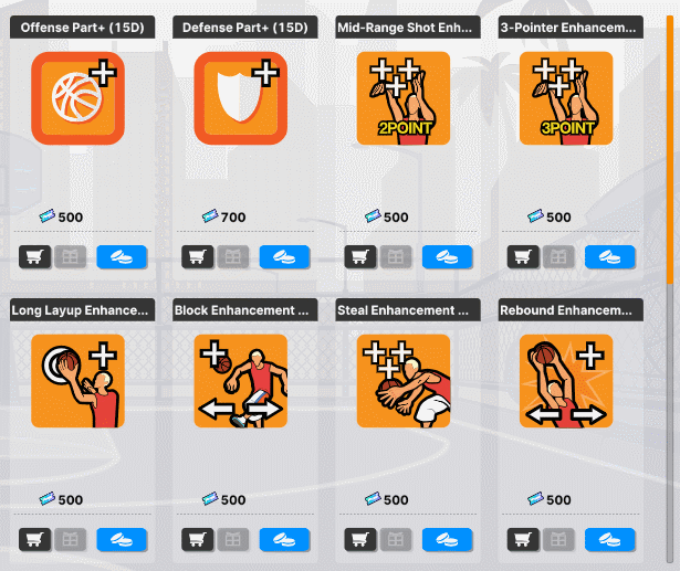 Note: Duplicate purchase is not allowed. Parts purchased from the Parts Shop are equipped at the Parts Storage and will be removed once expired. Only the Parts from a single Parts Shop can be equipped.