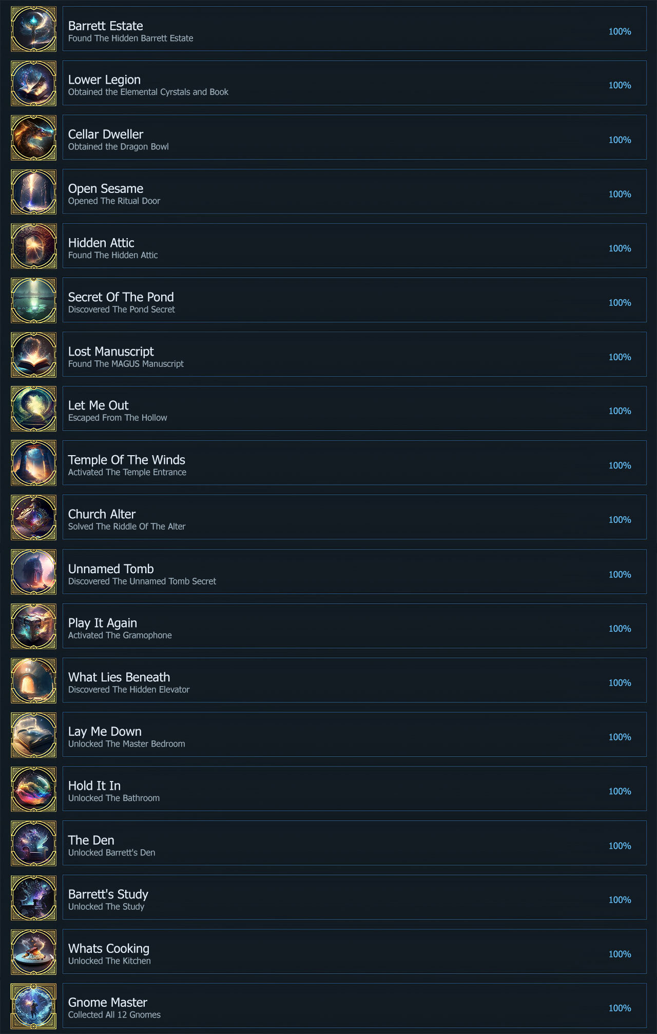 Complete all achievements and score a sweet blue ribbon next to the achievement progress bar for 100% game progress.