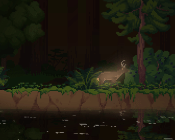 Emission is best described as a property of an object to glow independently, highlighting itself and objects around it. It's achieved by drawing pixels that should emit a glow into a separate texture and then adding that to our final image. Since it's all done dynamically, it allows us to play with the intensity, color, and spread of the glow to achieve the look we feel is perfect for Kingdom Eighties. Plus, it's fun to add to different objects in the game and see what a rad glow-in-the-dark deer would look like.