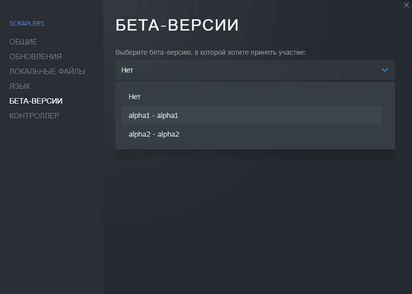 Let me remind you that saving the old version will not work in Alpha 5.0, but it is possible to install and play the older version. To do this, right-click in the game library on Steam on Scraplers, go to Properties - BETA VERSIONS tab and select the desired version.