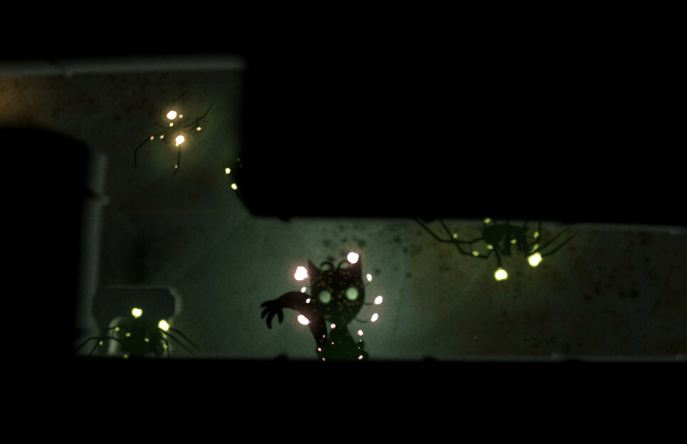 Navigating these dark areas pose a special kind of threat for our Cat. If you are not careful, and get prolonged exposure to spores, the Cat will eventually get infected. Increase infection rates are visually apparent as the growth of fungi tendrils increases all over the Cat's body. Eventually the infection reaches critically levels and the Cat's succumbs and dies, handing its body over to its zombified fate.
