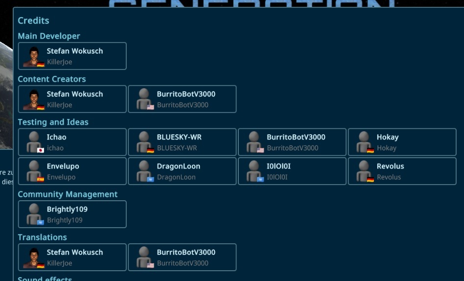 To show appreciation to the community, contributors have been added to the Credits Window in the MainMenu. If they've configured an Avatar, they will also spawn in the game as crew members.