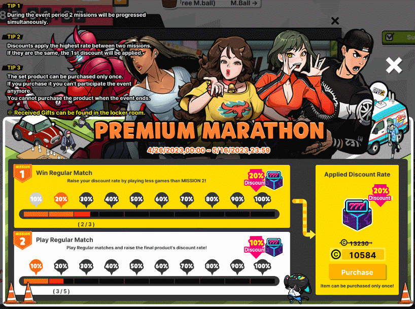 TIP 1: 2 Missions are activated in conjunction during the Event. The Discount rate is increased if you complete the missions.