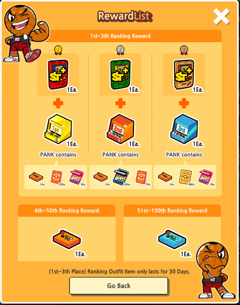 You will receive rewards corresponding to your high score! Here are the rewards you can get!