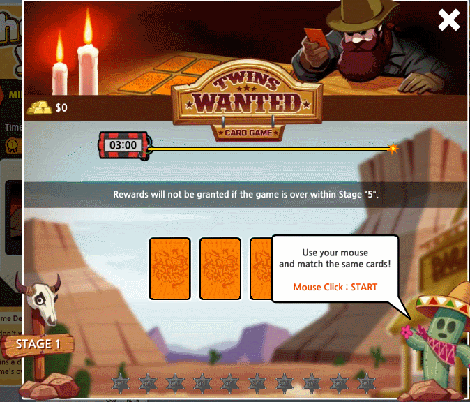 Match the 2 similar cards within the time limit to pass the round and to increase your points. The faster you match the cards, the better!