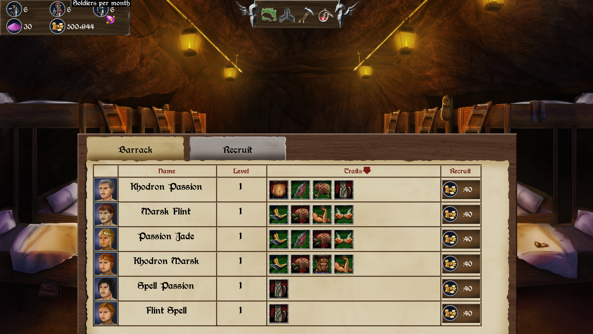 The resistance can recruit new units in the recruitment tab for gold. The available recruits will be cycled monthly, and the amount of them depends on the resistance monthly soldiers tab (top left on the next picture).