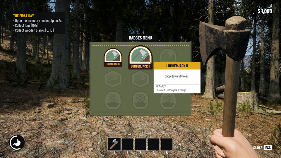 The tasks you will have to complete to unlock badges vary with various activities such as resource gathering, hunting, buying and selling and others such as "explorer badges" which you will earn by hiking through the beautiful valley and finding places of interest.
