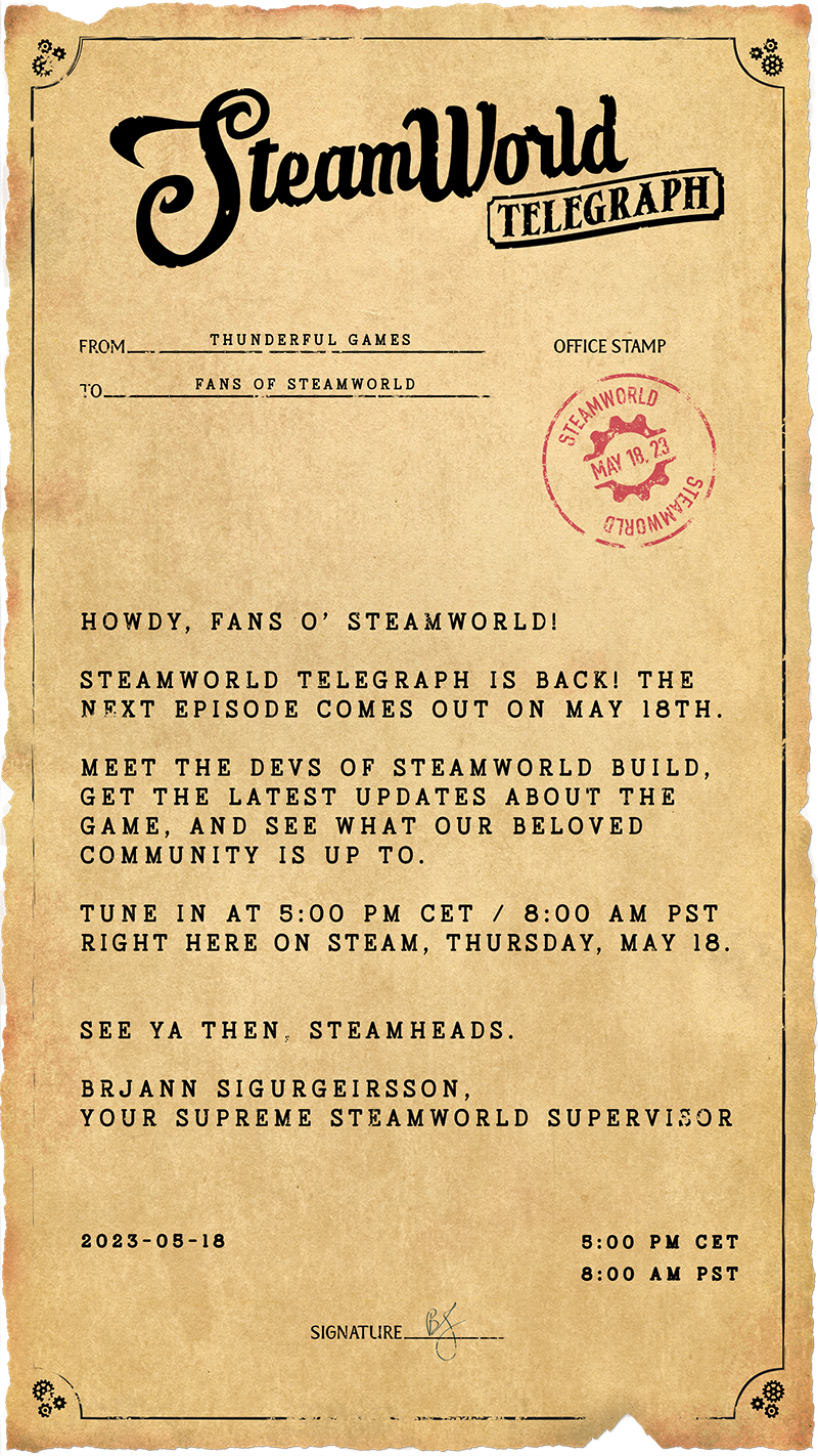 Join Lead Designer Dennis Douthett and Senior Community Managers Andy Benditt and Nicole Rasner for the livestream on May 22 at 5:00pm CEST / 11:00am EDT on Twitch and YouTube.