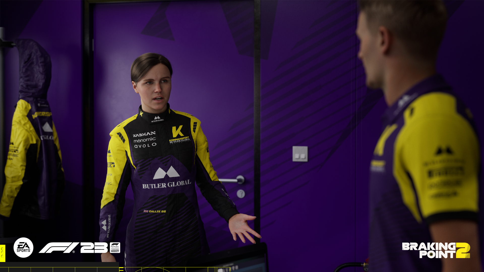In Braking Point 2, the focus will be on the 2022 and 2023 seasons. As well as some familiar faces, there are a whole host of new characters that feature in the story. One of those is the newly crowned Formula 2™ champion and sister to Devon Butler, Callie Mayer.