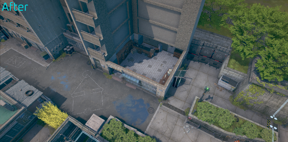 So far, you've seen about half the map changes that we've made to Lumia Island. When we first started the engineering process, we were worried that opening up buildings would cause a huge headache. In some cases, expanding some areas by 15% didn't seem to make much of a difference.