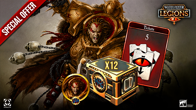 Lead the World Eaters to victory as their Primarch! Celebrate the Warhammer SKULLS event by adding Angron to your collection with a new SKULLS bundle! Gather the bloodthirsty World Eaters and command them into battle with the Angron SKULLS DLC bundle, which includes: - A legendary Warlord: Angron, Primarch of the World Eaters - 12 World Eaters crates: each crate contains 5 cards. At least 3 of them will be World Eater cards, including a rare or better one - An exclusive premium Angron avatar cosmetic: customize your profile and become the incarnation of pure rage - 5 event entry tickets: take part in events to unlock amazing new content into the game and complete your collection!