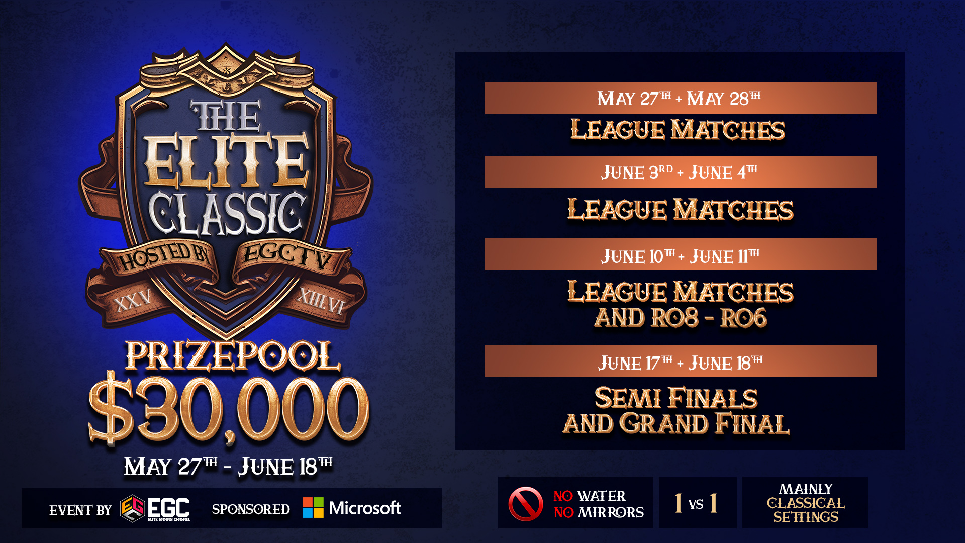 After two fierce qualifiers, The Elite Classic main event is on! Hosted by EGCTV, this Age of Empires IV league-style tournament guarantees each player 15 sets of intense 1v1 action!