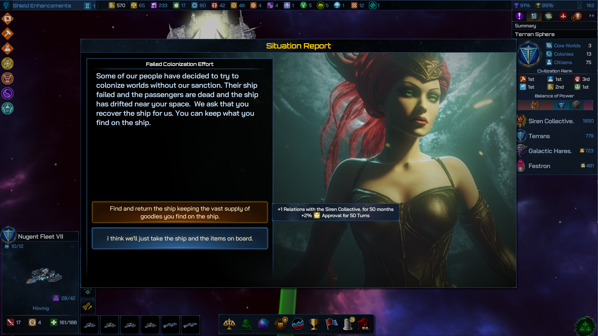 Economy and Diplomacy Tuning: Trade routes have been revamped to be more valuable, with their value multiplier increased from 15% to 33%. Various factions, including the Banking Clan and Capitalist Society, have undergone balance tweaks to offer a more fair and engaging gameplay experience.