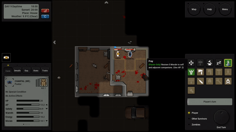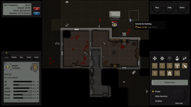 In addition to these changes, I've introduced offline mode, automatic end turn when sleep, and new traits as many of you have requested. Please check out the full patch notes below for more details. As always, thank you for playing Terminus: Zombie Survivors.