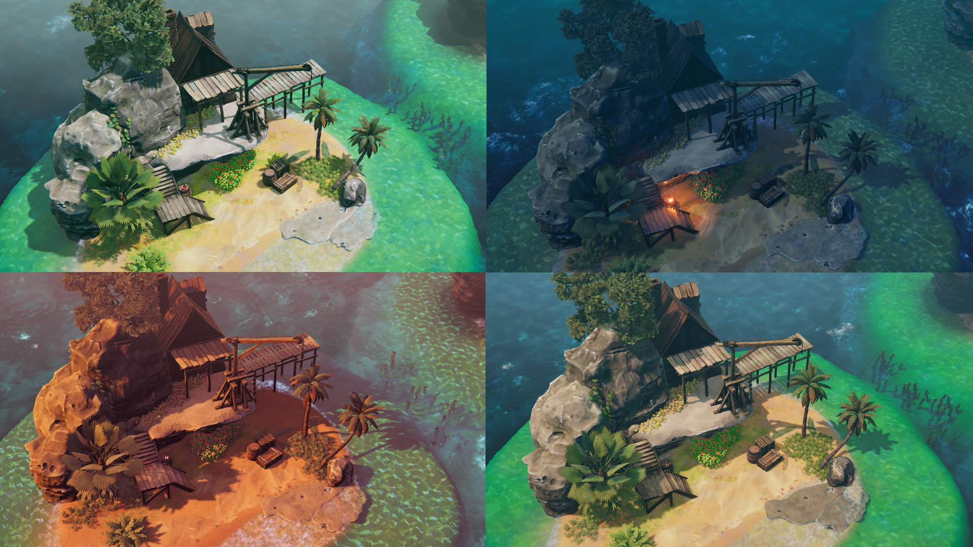 These screenshots showcase how the artists set the mood while experimenting with different lighting scenarios.