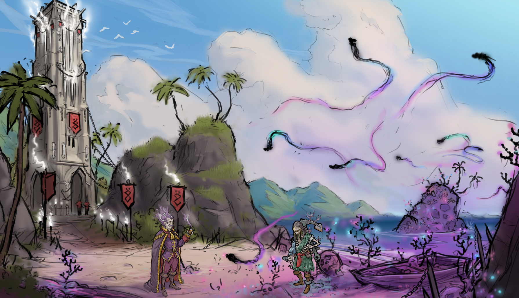 In early concepts you can already see the Inquisition and their oppressive order clashing with the soul magic of the Lost Caribbean and the cursed pirates roaming its seas.