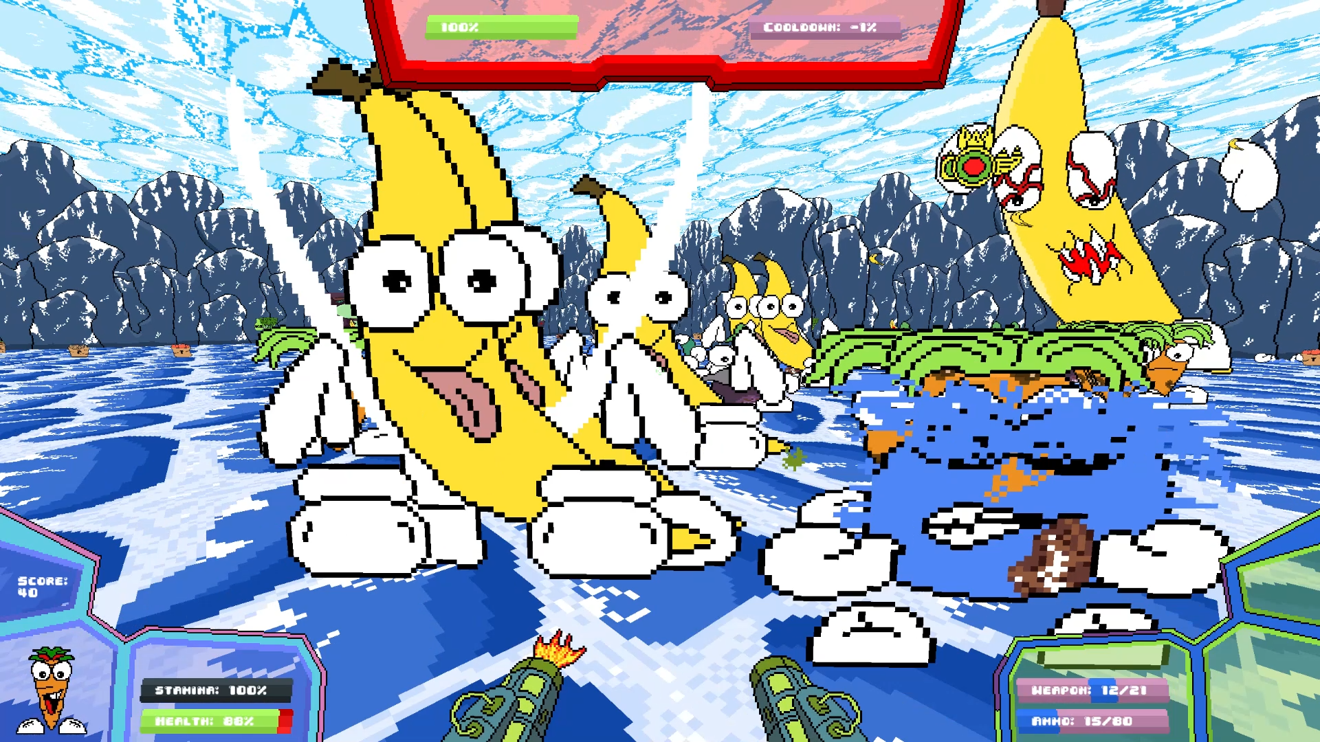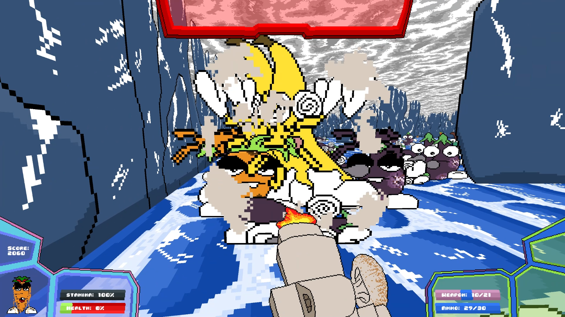 A new boss! We'll keep him quiet but you'll get to vs him on the last stage, stage 6! Yes, that's right, a whole new stage too! 5 levels of the stage and it's a rad one too! With this there are also new enemies, cucumber big and small, and other crazy enemies too!! Also, we have added some alt fire attacks to most weapons and fine tuned them too! Keep your eye out for these.