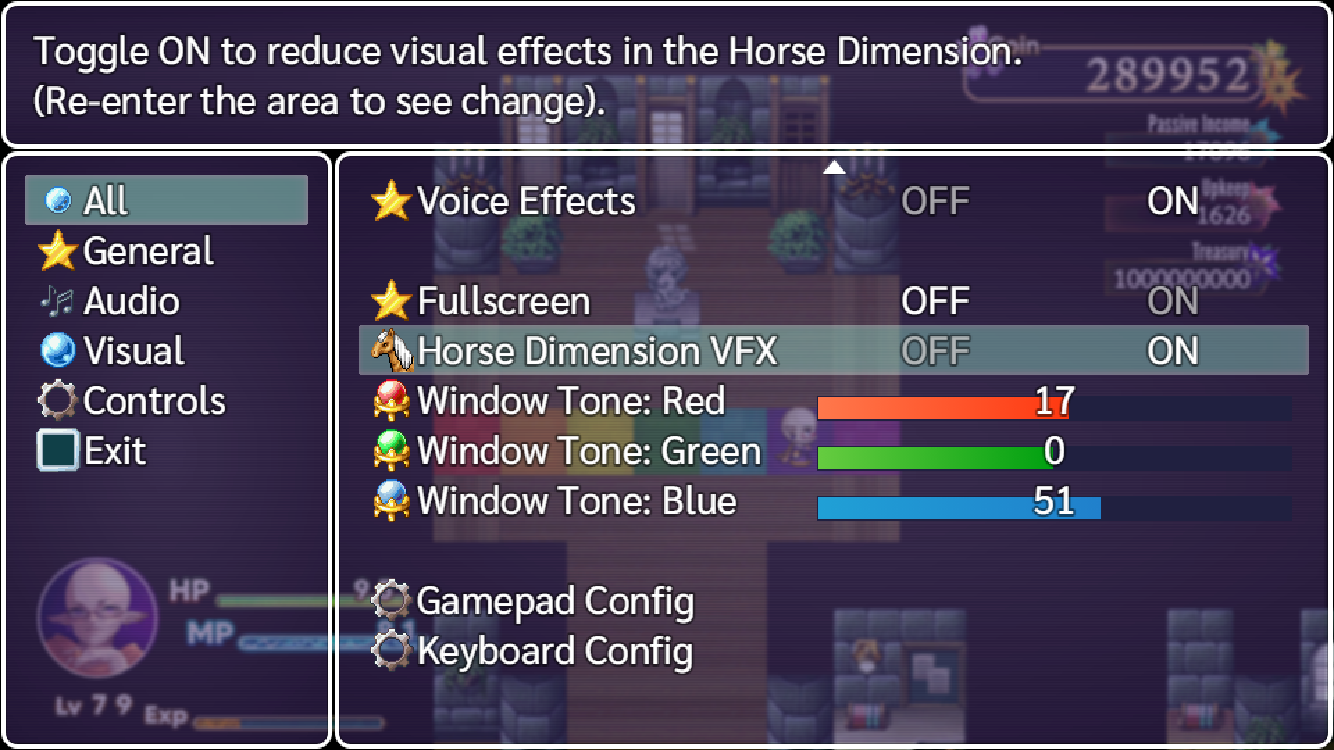 Added a toggle in the option menu to reduce Horse Dimension VFX. (Feedback on how this impacts performance on Steam Deck would be appreciated, I'm unable to test it myself).