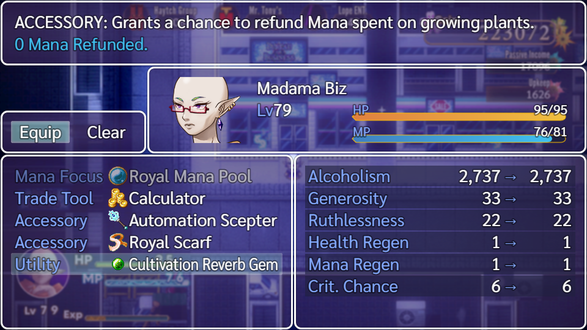 Added a separate accessory slot for utility accessories (booze club pin, fish motivation motivator, stocks ring, boots, cultivation gem).