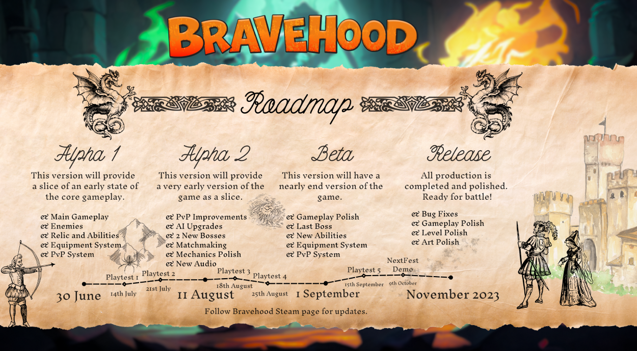As we promised, because the project achieved more than 1000 wishlists we are sharing our roadmap and playtest dates with you.