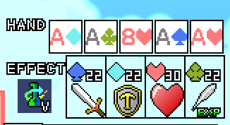 The most characteristic system of this stage is, by far, the "hand card" system. In this stage, a total of 52 playing card cards that fall along the way can be placed into 5 "hand card" slots, and the higher the grade of the card in the hand, the higher its status.