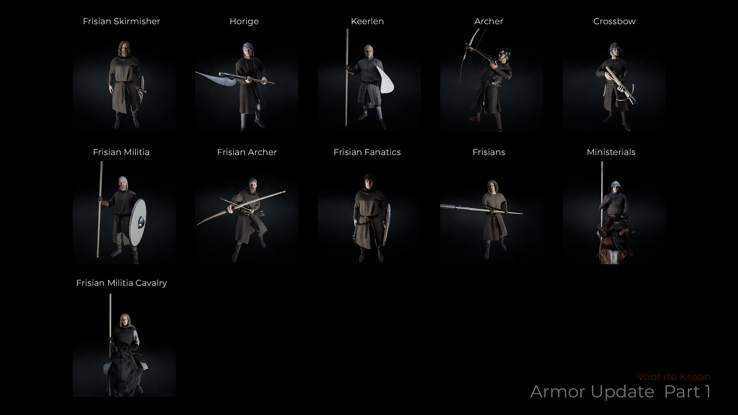 This is a big one, the first of two armor updates that replace all models in the game. This update replaces all militia models with era approriate outfits inspired by and created directly from historical references.