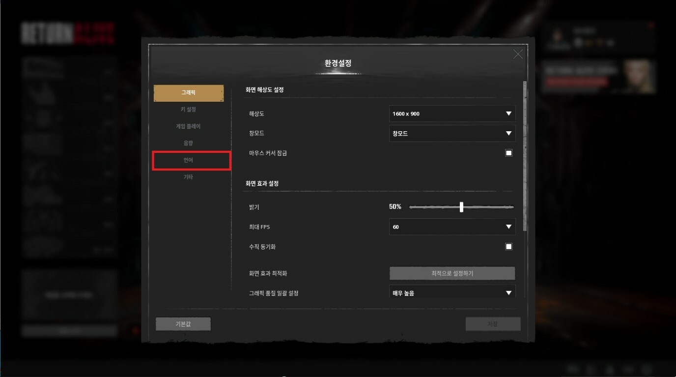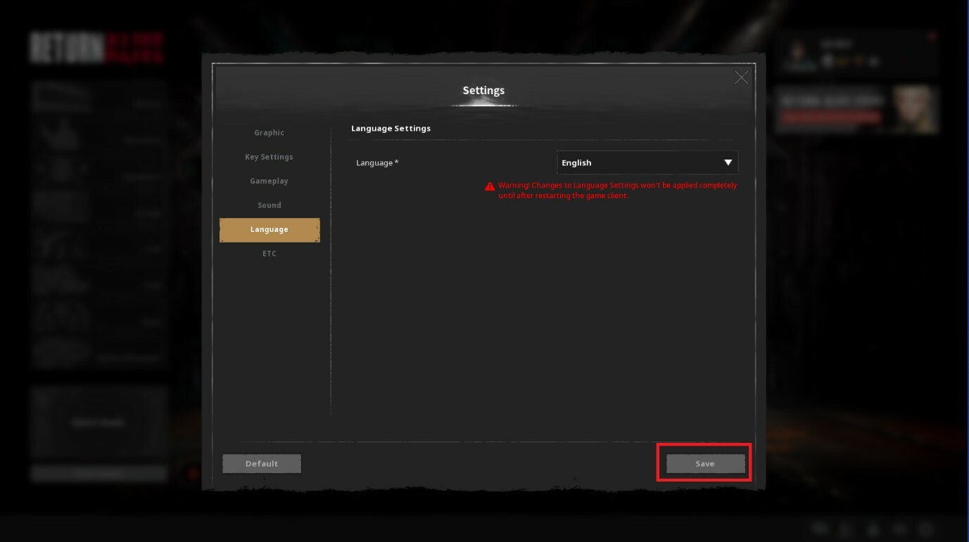 We have noticed that some players have encountered an issue where the default language for the Return Alive is set to Korean. In order to assist these players who have encountered this issue, we have prepared a guide on how to change the language setting to English for non-Korean speakers.