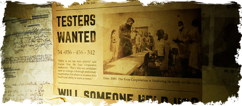 While exploring a decrepit laboratory, I stumbled upon a mysterious room filled with newspaper clips meticulously pinned to a corkboard. The tale, woven together with pieces of red string, revolved around the EVAS corporation. Are they the ones responsible for what is happening to me? As I unravelled clues and bits of information, I saw a narrative that seemed straight out of a dystopian novel.