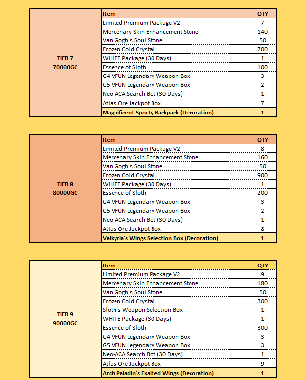 2. The player will only get the items on the tier reached; other rewards that fall under the current tier will not be awarded.