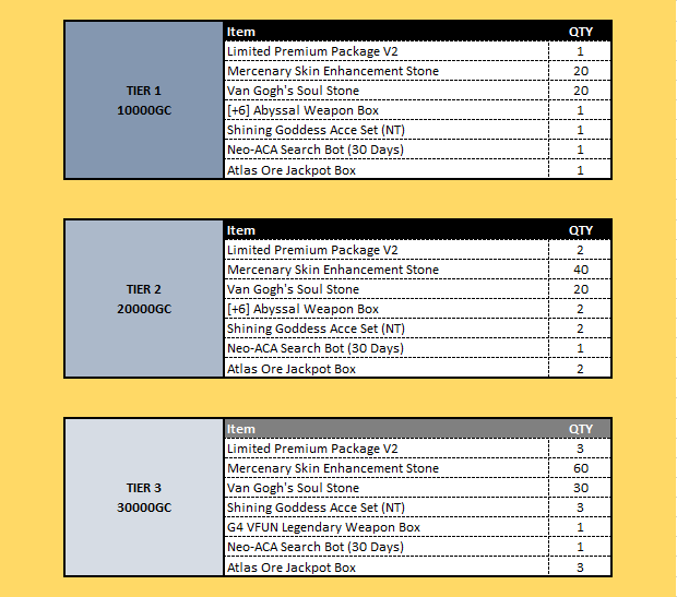 3. The accumulated amount of GC will be rounded down to the nearest tier (e.g. 29996 GC will only be eligible for the 20000 GC tier).