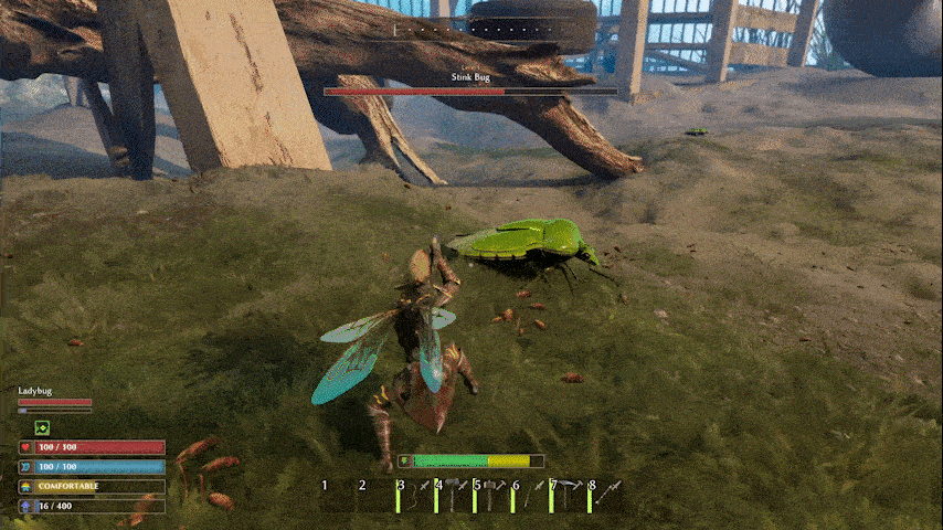 Ringed by a fence, with an old dead tree in the centre, the Forbidden Monuments offer the most challenging creatures the game has to offer. Stinkbugs will inflict area-of-effect poison attacks, while territorial Blue Tit birds will swoop down and land devastating attacks from above.