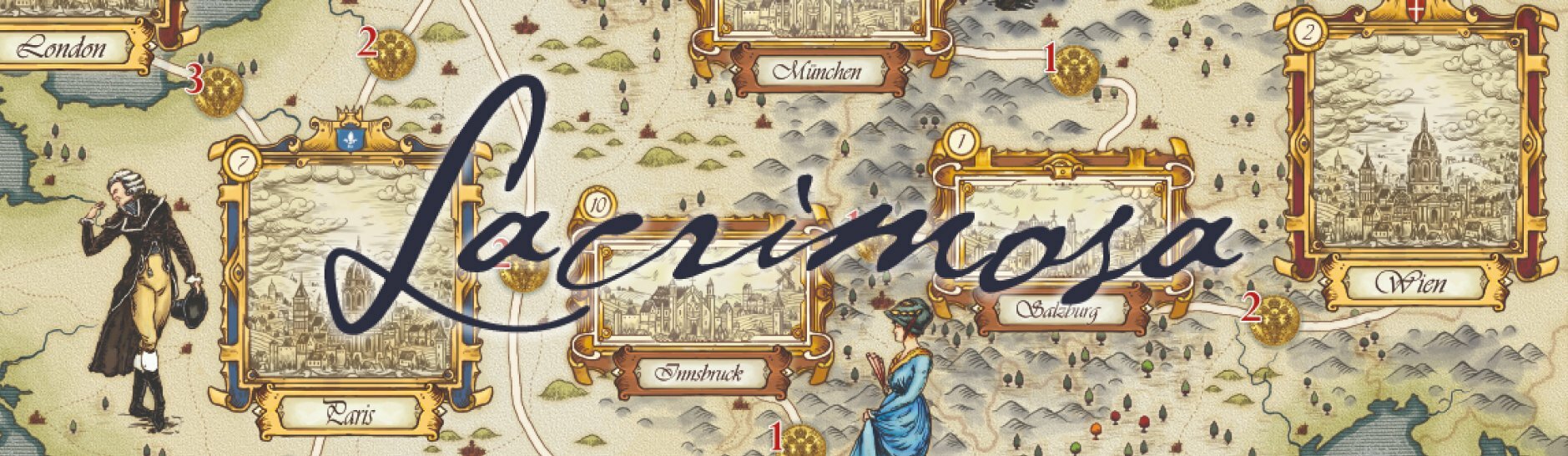 In Lacrimosa, players take the roles of patrons of the late musician, contributing with their fundings to the composer's works one last time. During the game, you play in two different timelines: the present and the past. In the present, you commission the missing parts of the Requiem from other composers in order to complete it. When developing past events, the game takes place in five epochs in which you contribute by buying new compositions from the composer to sell or exhibit, accompany him on the different journeys through the main courts and theaters in Europe, and gather the resources you need in order to support the musician during his career.