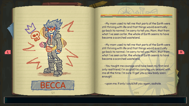 You may have seen some hints in screenshots from our previous dev updates, but we now have all the screens for the “Status” menu. This one is all about your currently acquired abilities and weapons. Oops, skipped that tutorial explaining a new ability or forgot some of the details? Don’t worry, we got you covered. You can re-watch any tutorial video/text for all your turbo gear, right here, in this screen. Pretty handy, right?